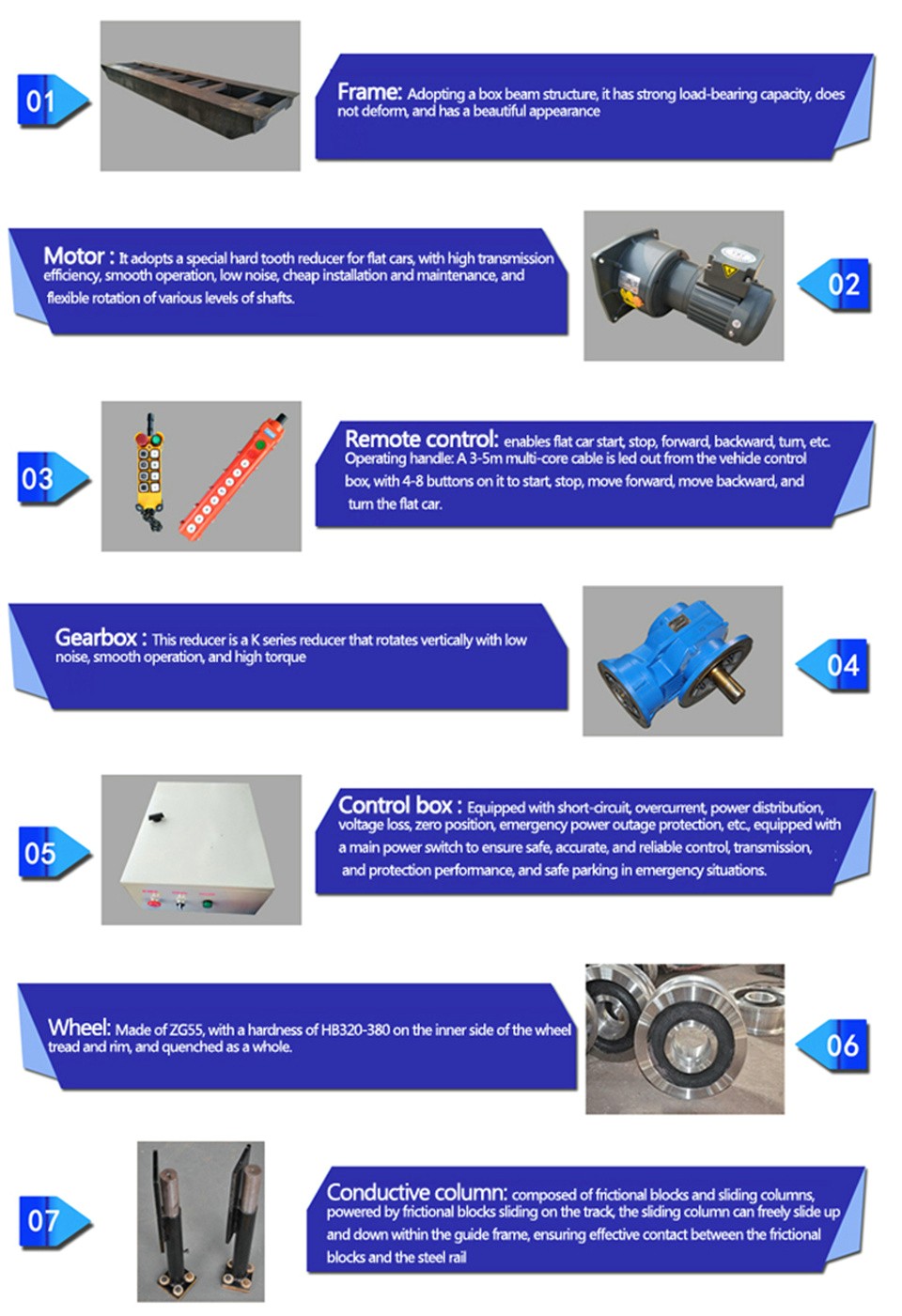This 5 ton remote control industrial transfer trailer improves material handling efficiency by reducing manual labor and increasing operational safety.